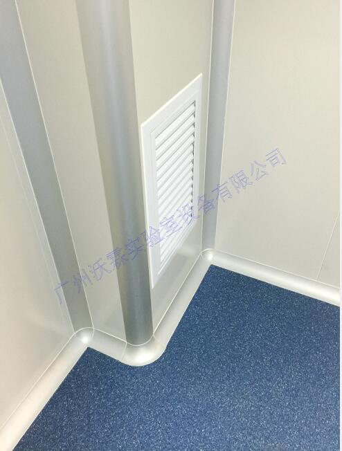 從保溫角度考慮實驗室的圍護及吊頂結(jié)構(gòu)采用厚度為50mm的凈化實驗室專用玻鎂夾心復合彩鋼板(優(yōu)點:機械強度高,隔熱、隔音、防潮性能好、平整光滑、耐腐蝕、易清潔、安裝方便)。頂棚及板壁的墻角處和墻與地面、墻與吊頂采用圓弧陰陽過渡并封閉。所有配套鋁合金型材均采用優(yōu)質(zhì)鋁合金型材,容易清潔。