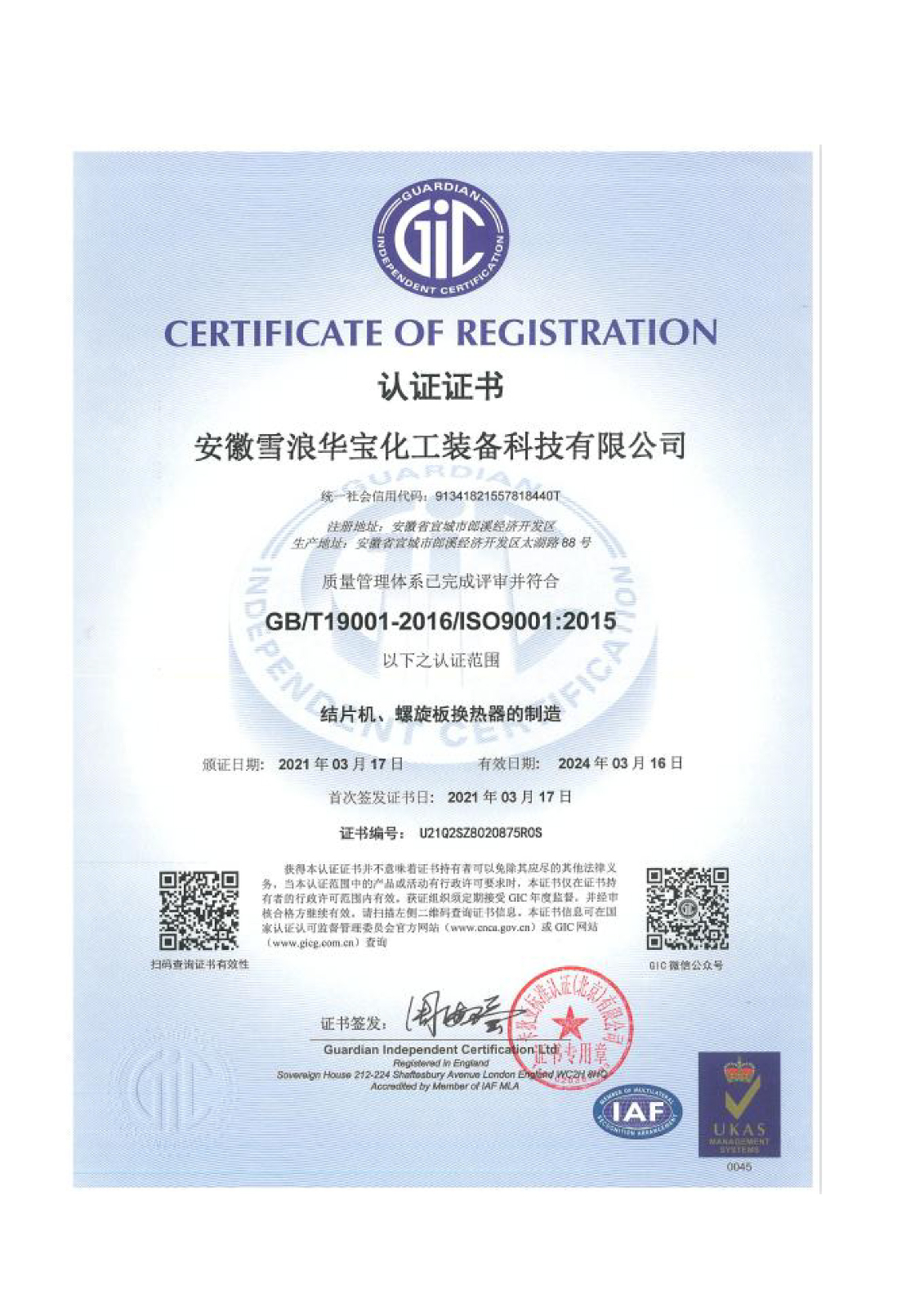 安徽雪浪華寶化工裝備科技有限公司